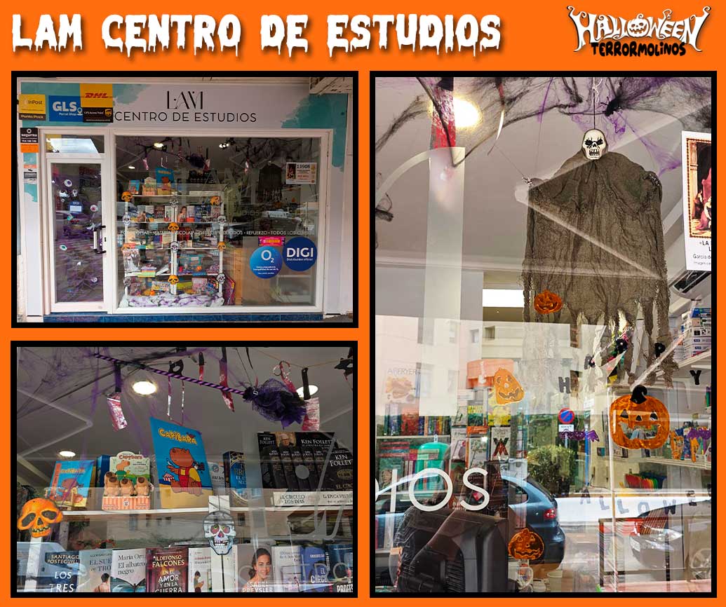 El Concurso “TERRORMOLINOS” invita a los establecimientos participantes a decorar sus escaparates con motivos propios de las conocidas como “fiestas del terror”: calabazas, brujas, fantasmas, murciélagos y otros elementos típicos de Halloween.